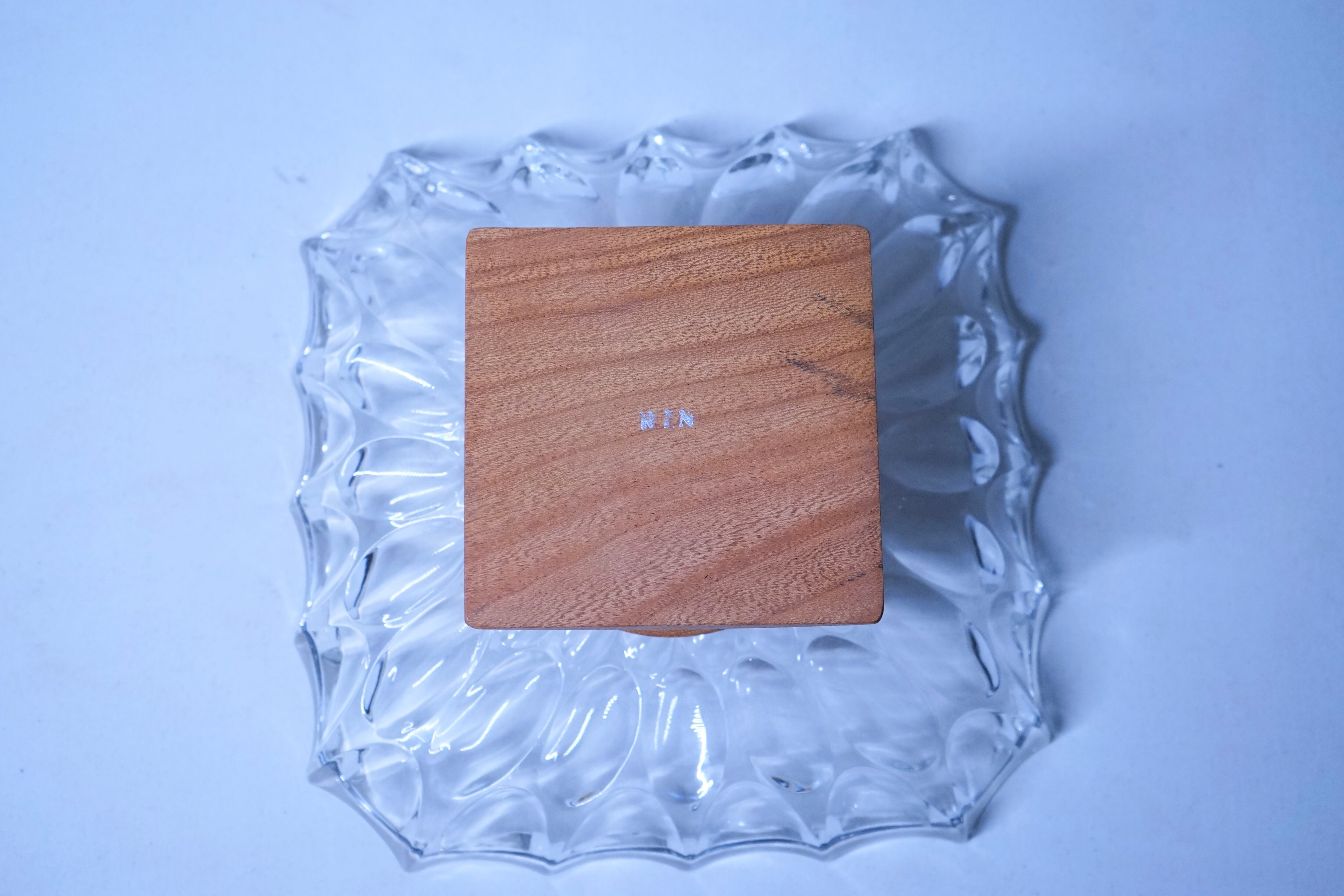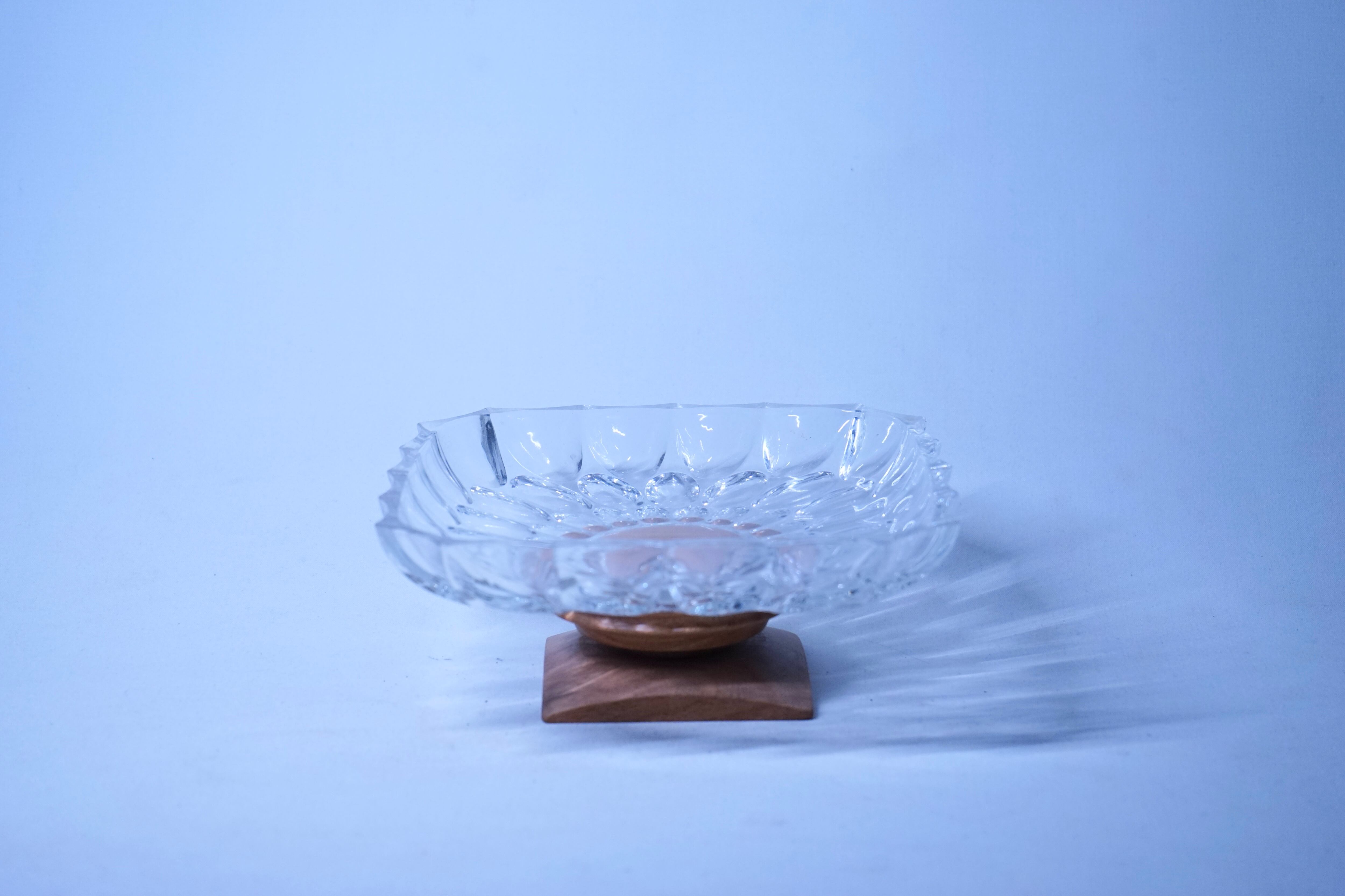 ヴィンテージガラスとチーク材を使用したガラスコンポート皿です。