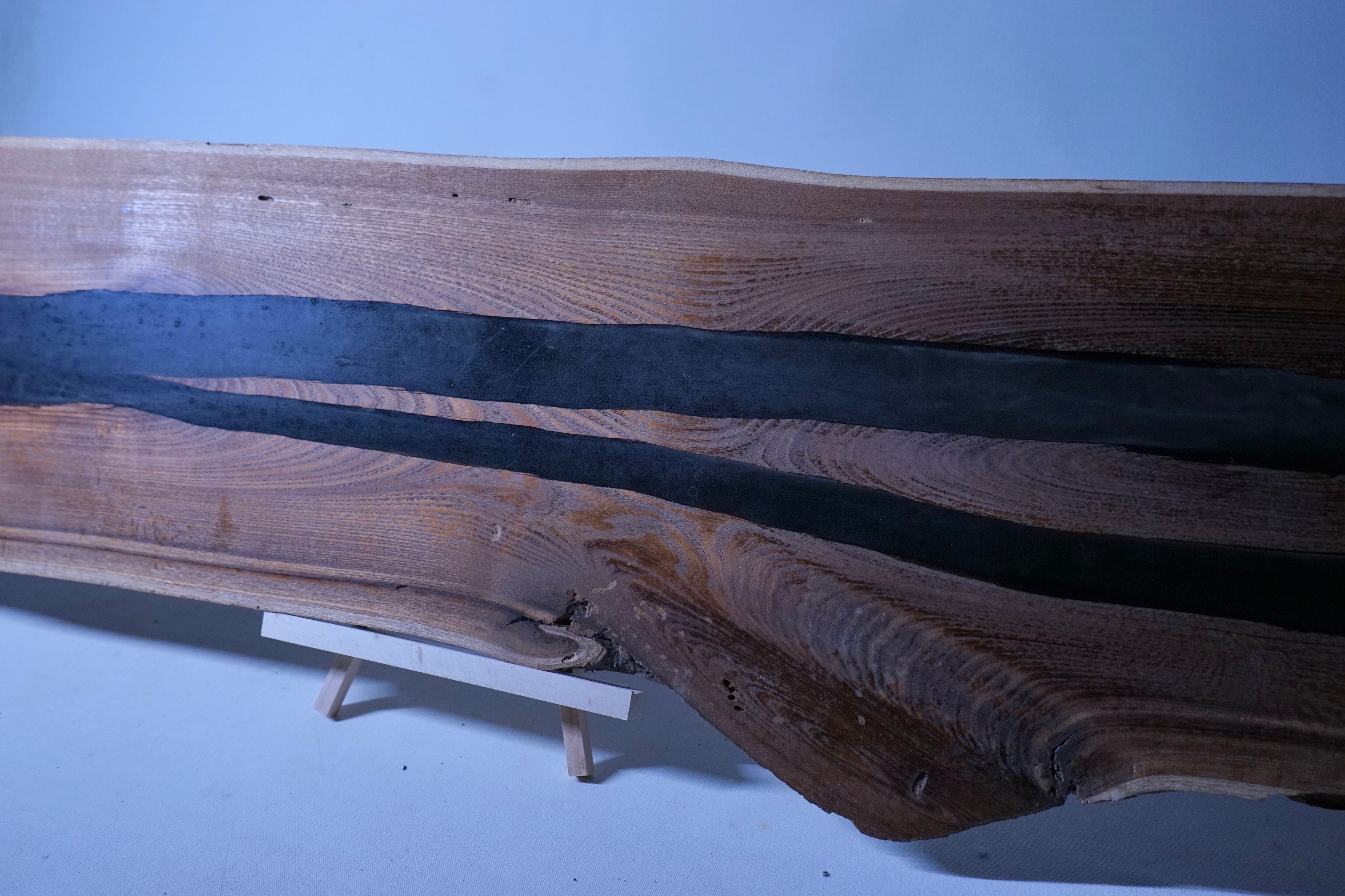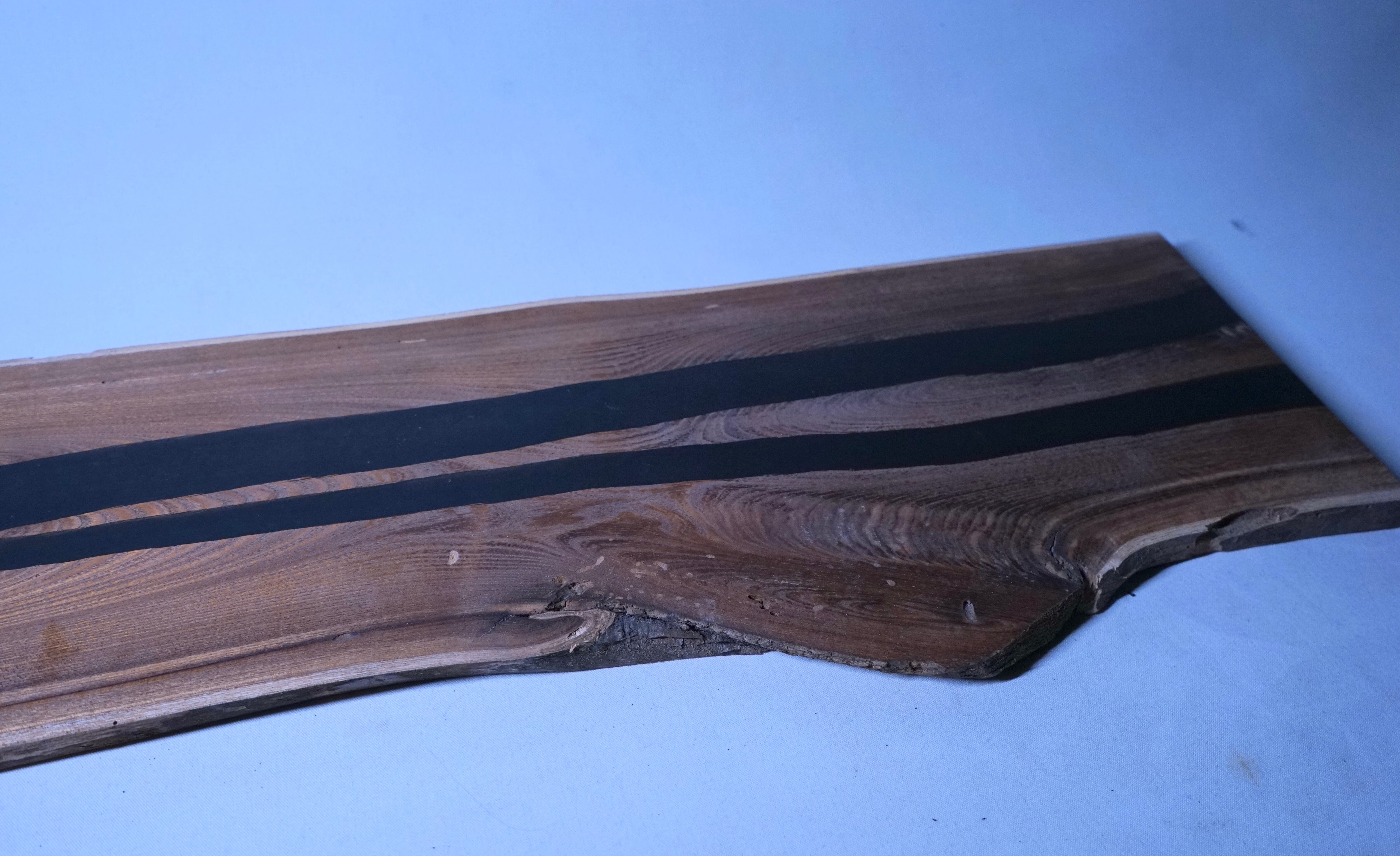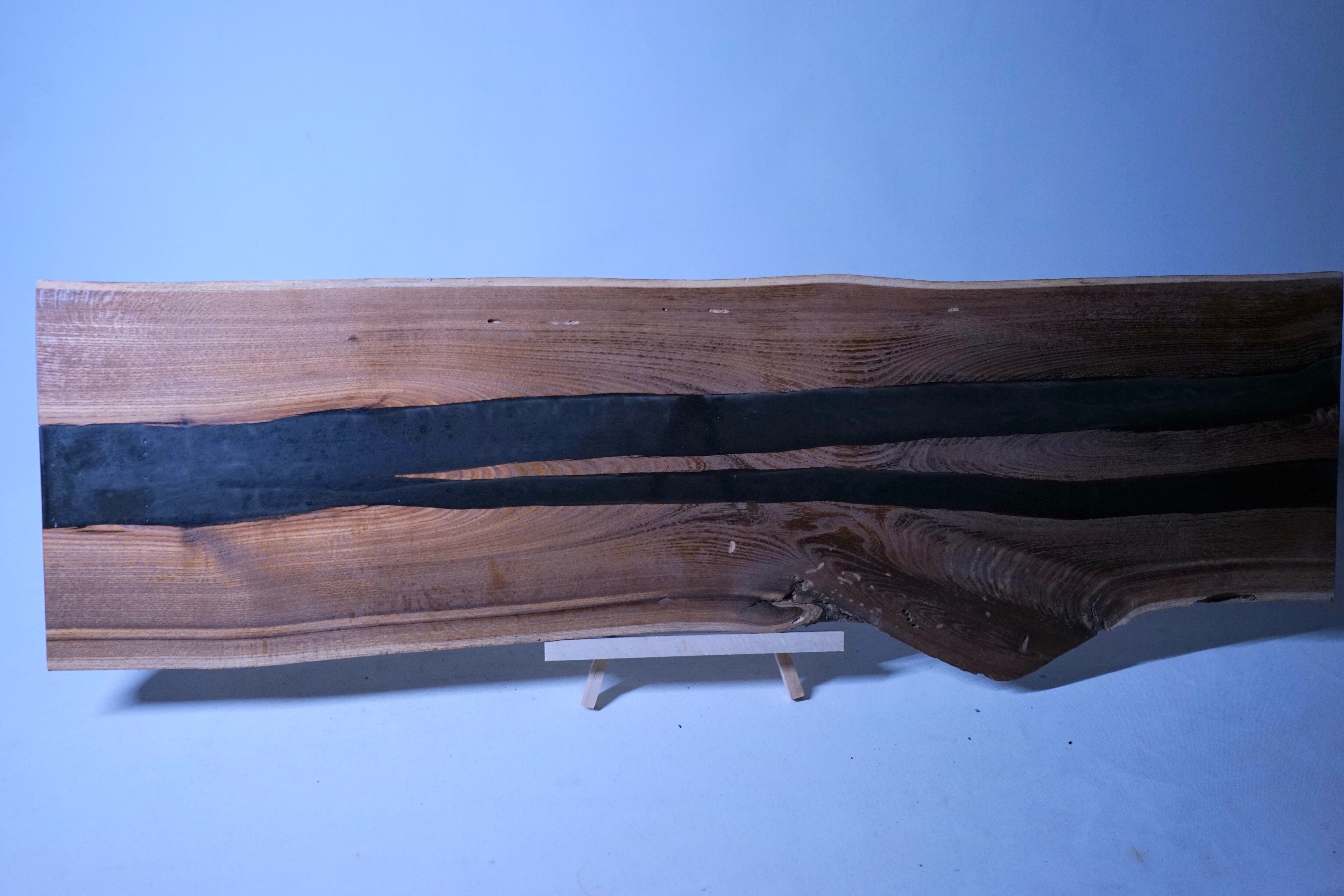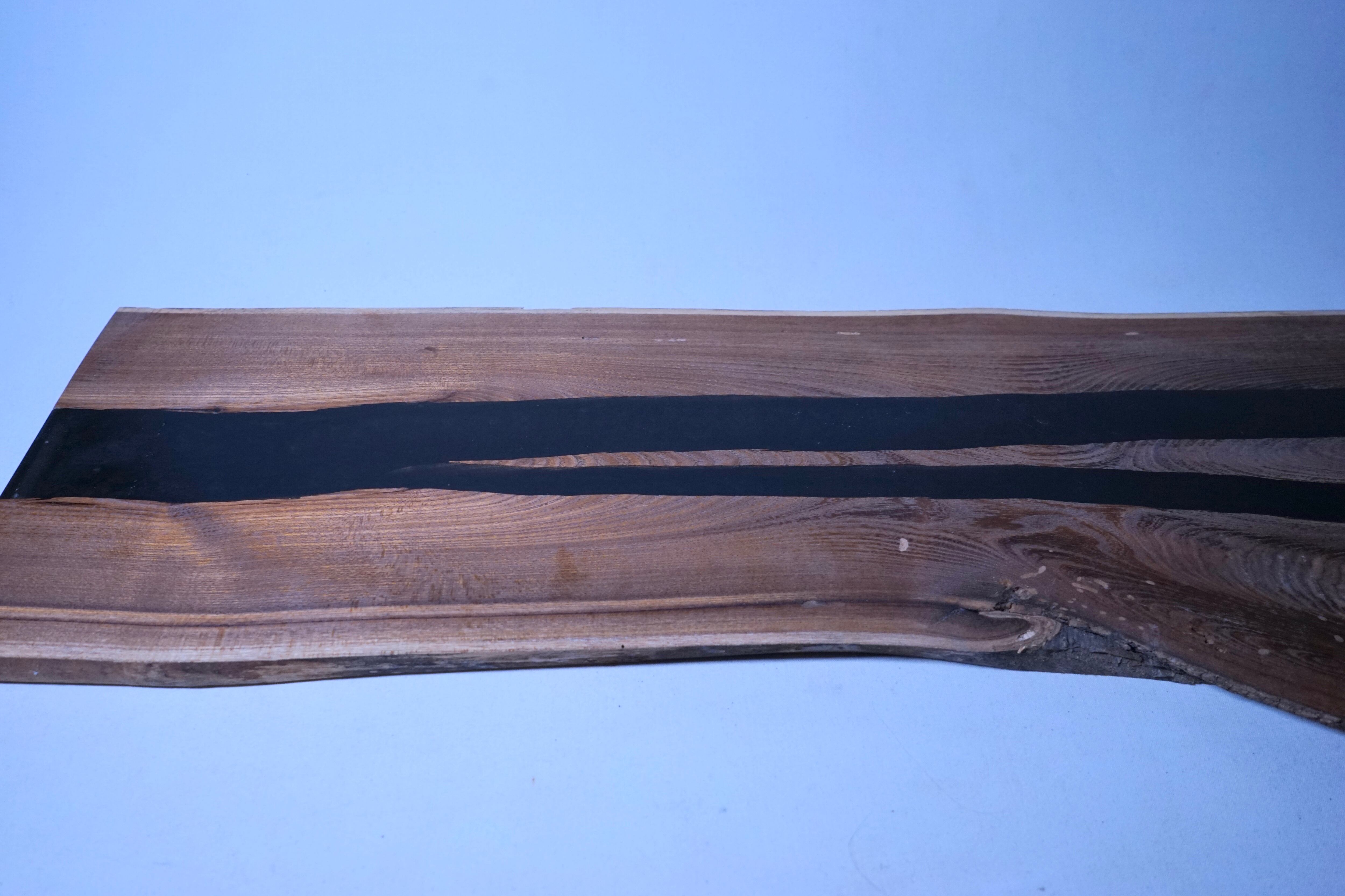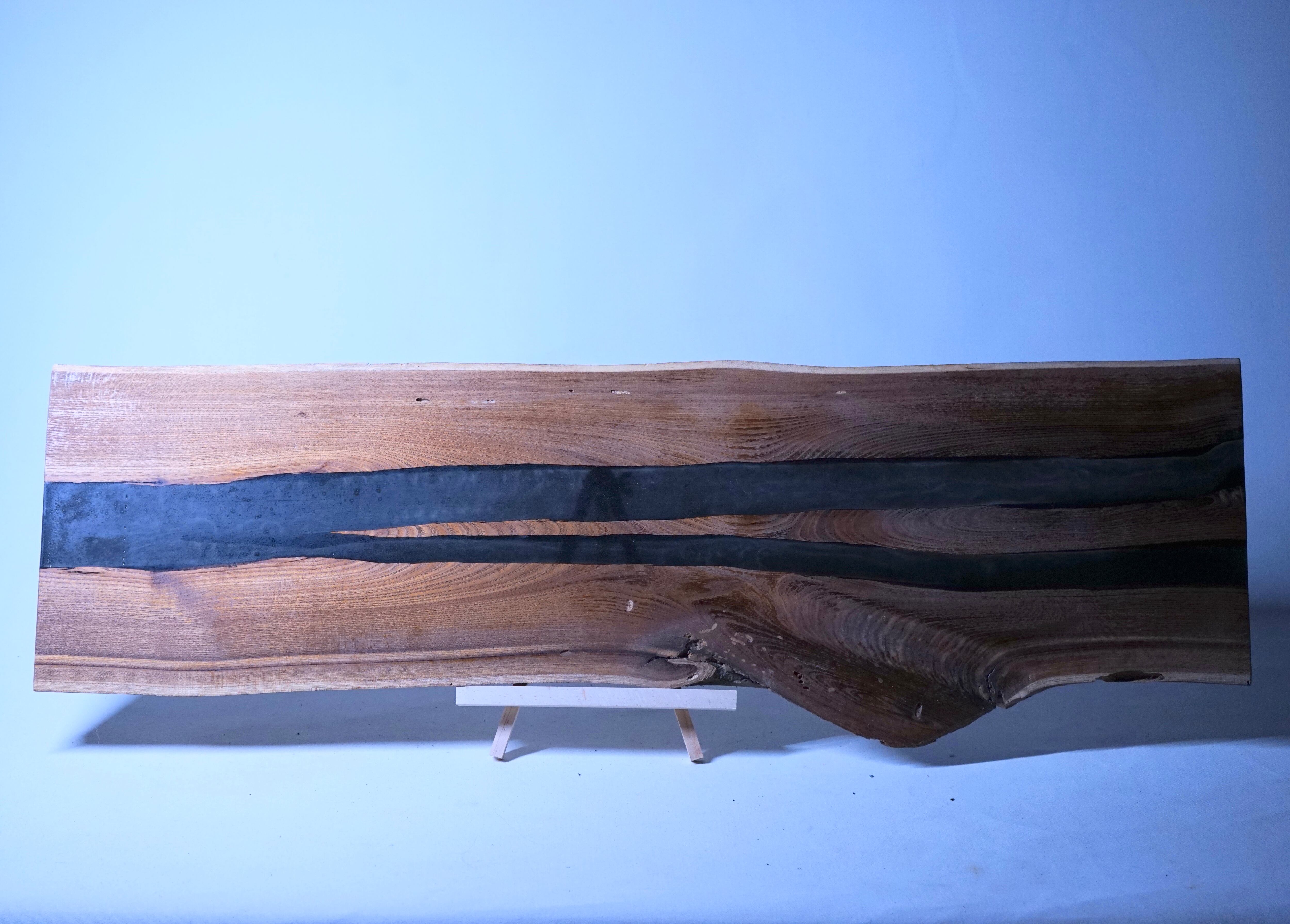 楡の木にresin(エポキシ樹脂)を掛け合わせて一枚のプレートに加工しました。