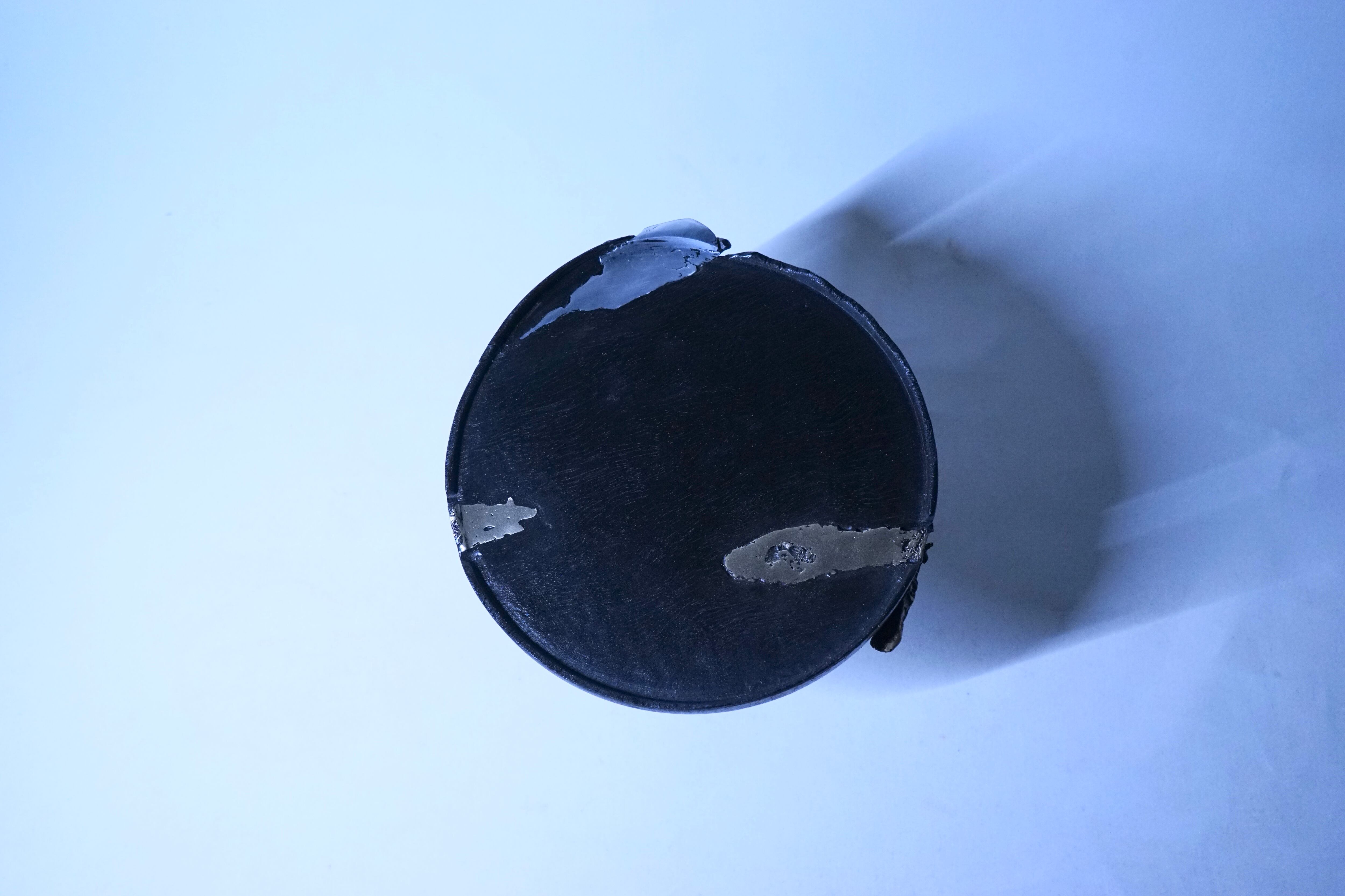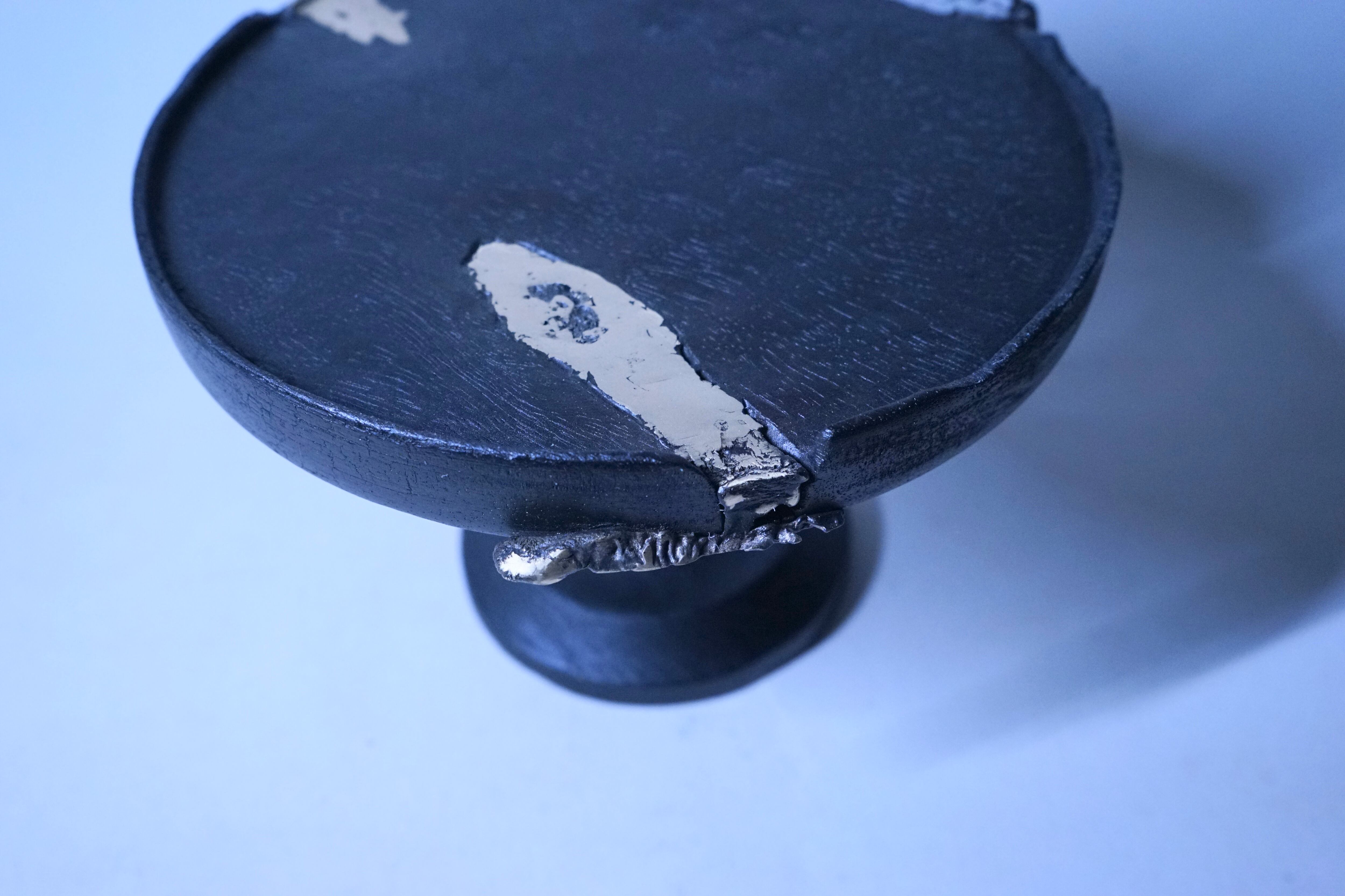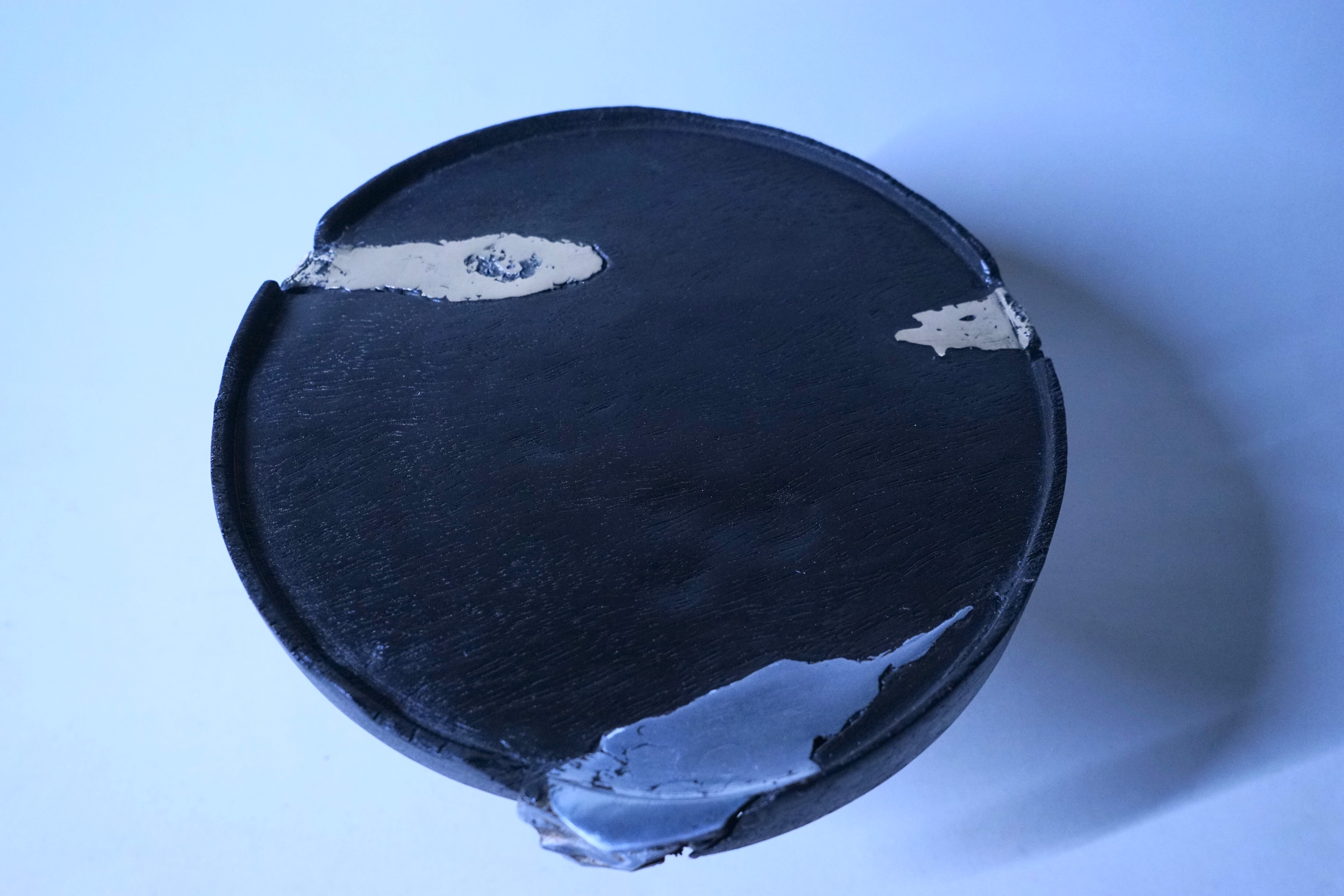 朽ちていく木材の持つ欠けや割れ部分に直接真鍮を流し込み形を形成させ、自然界では決して交わる事のない両者を完全独自の技術により融合させた一品となります。