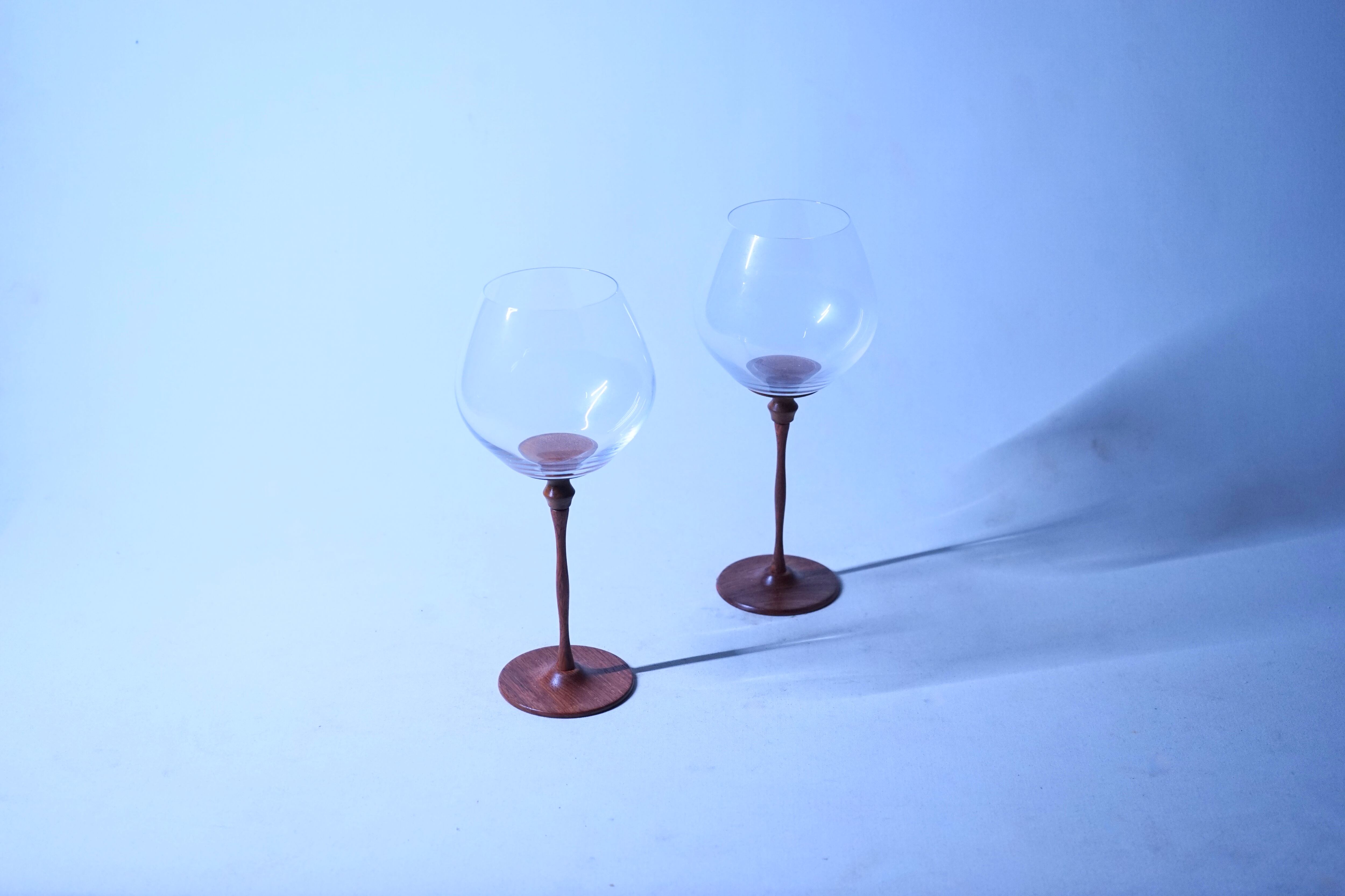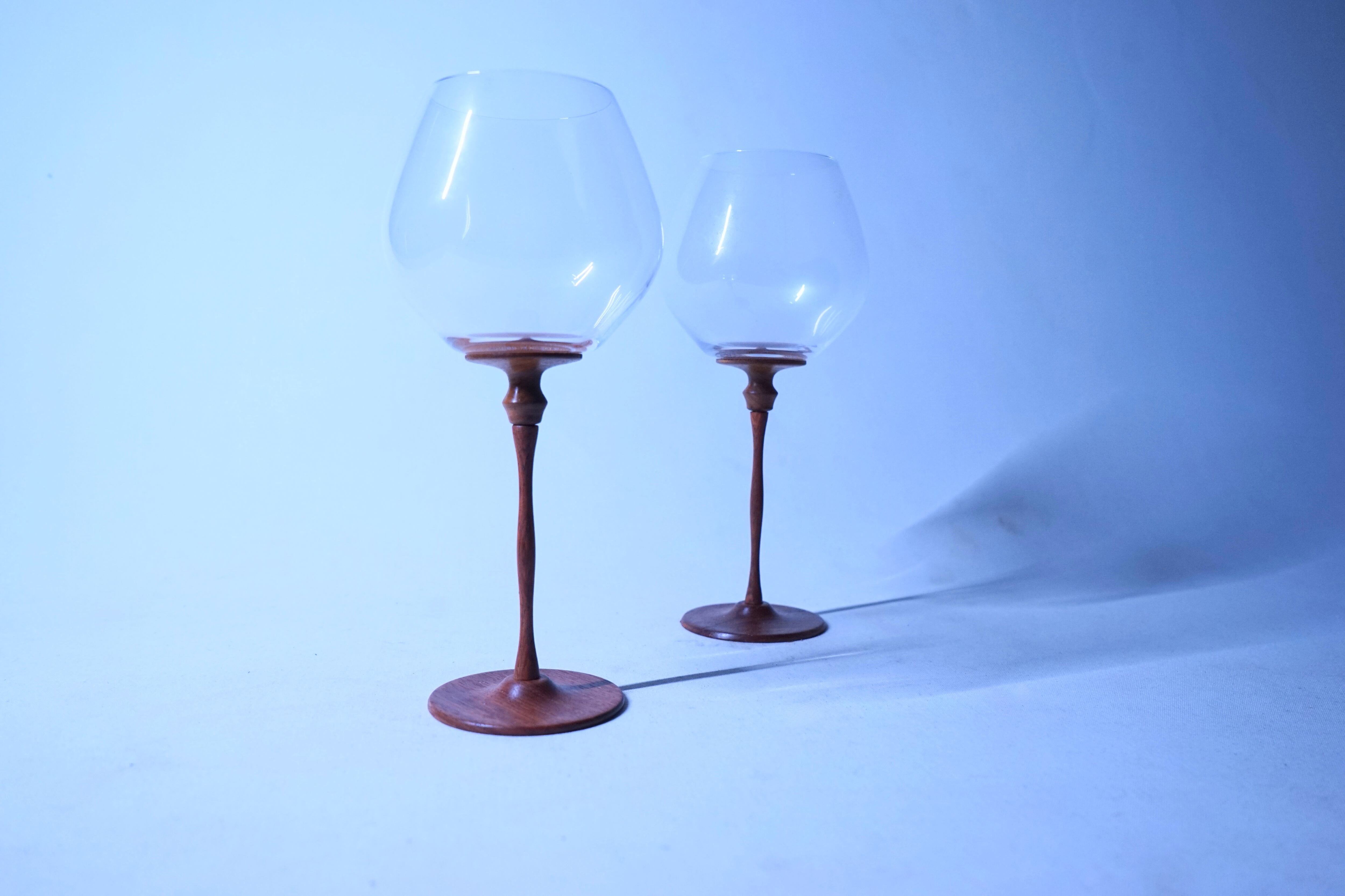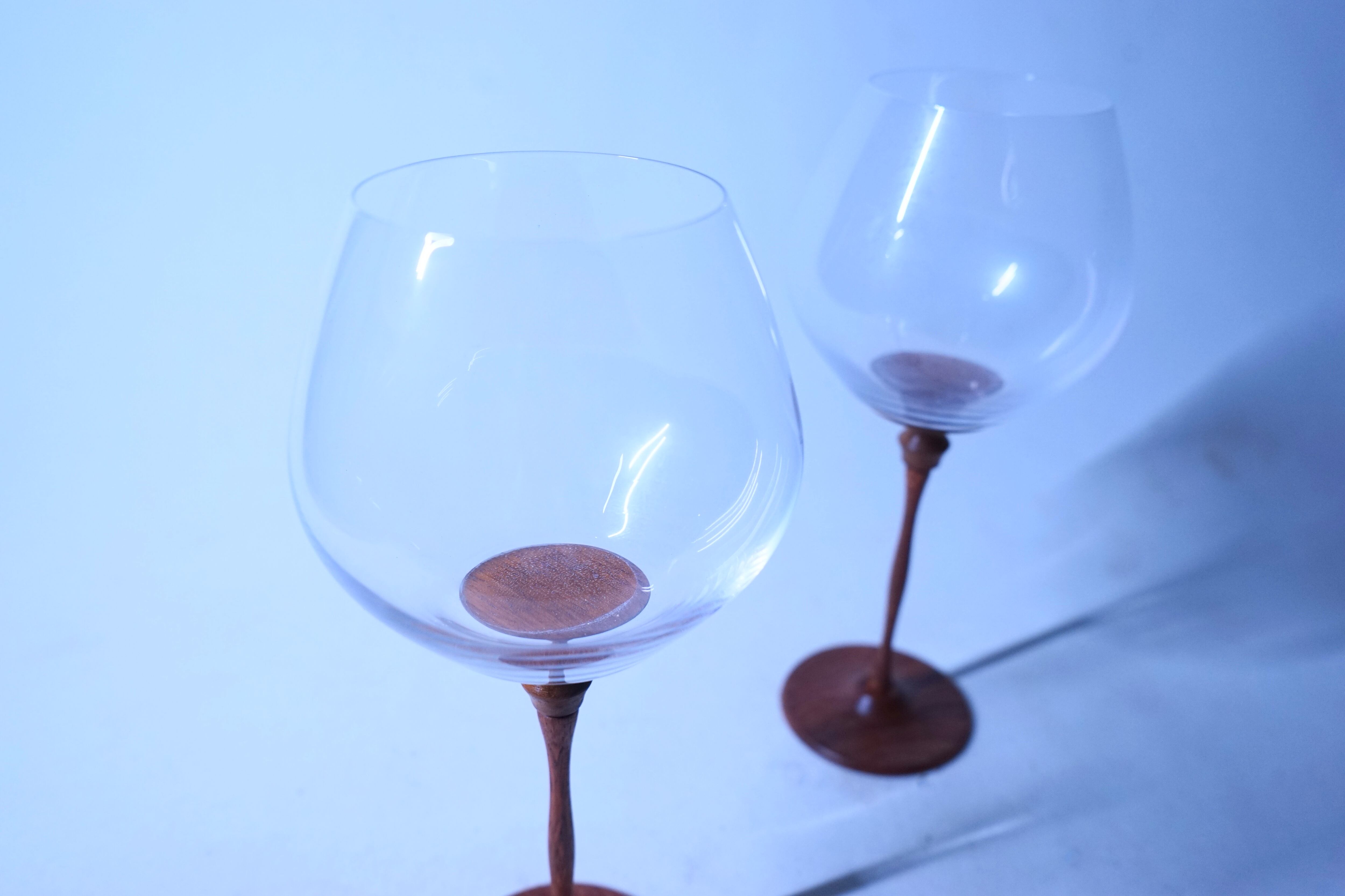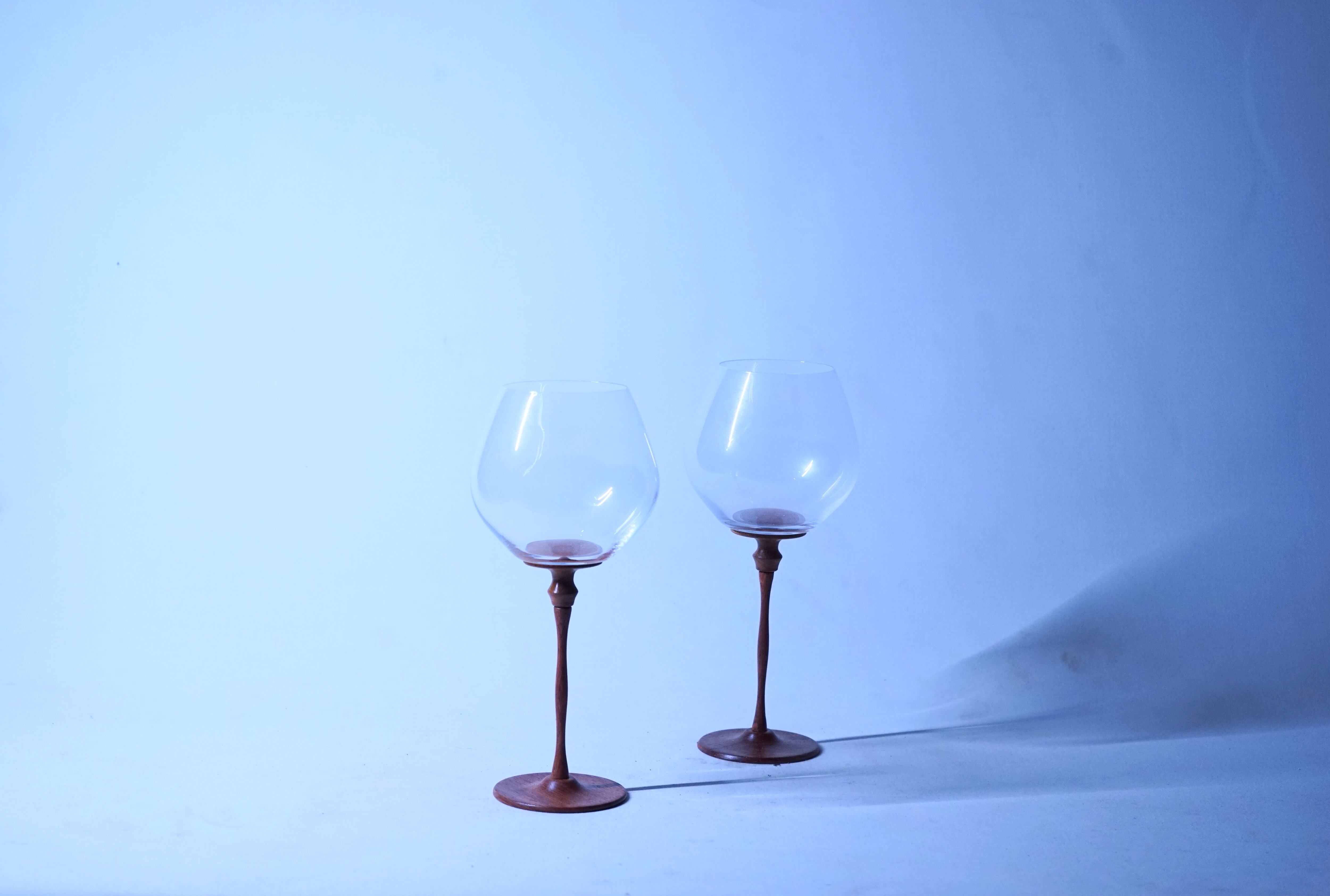 アンティークのガラスと果林の木の台座を使用したワイングラスになります。