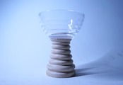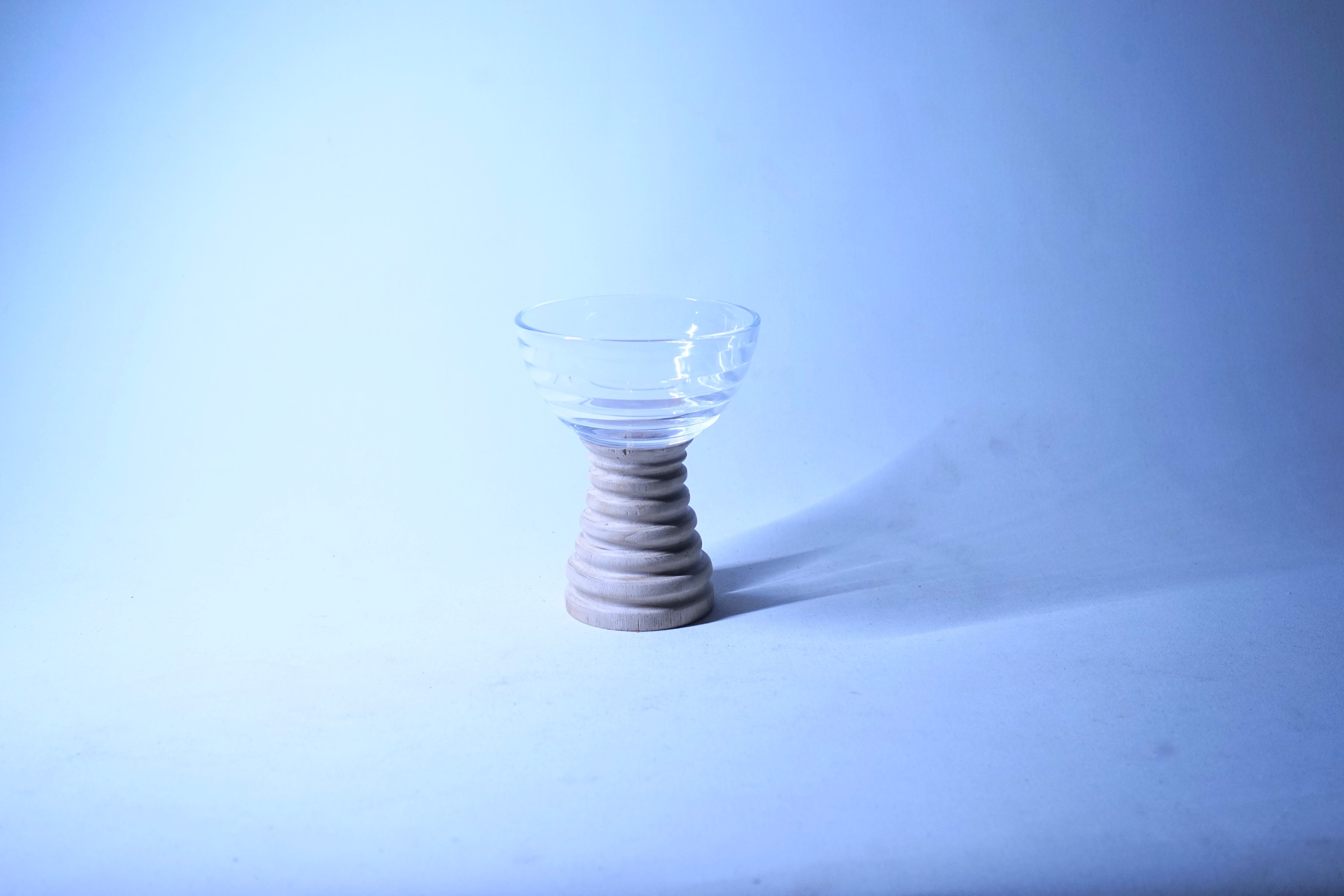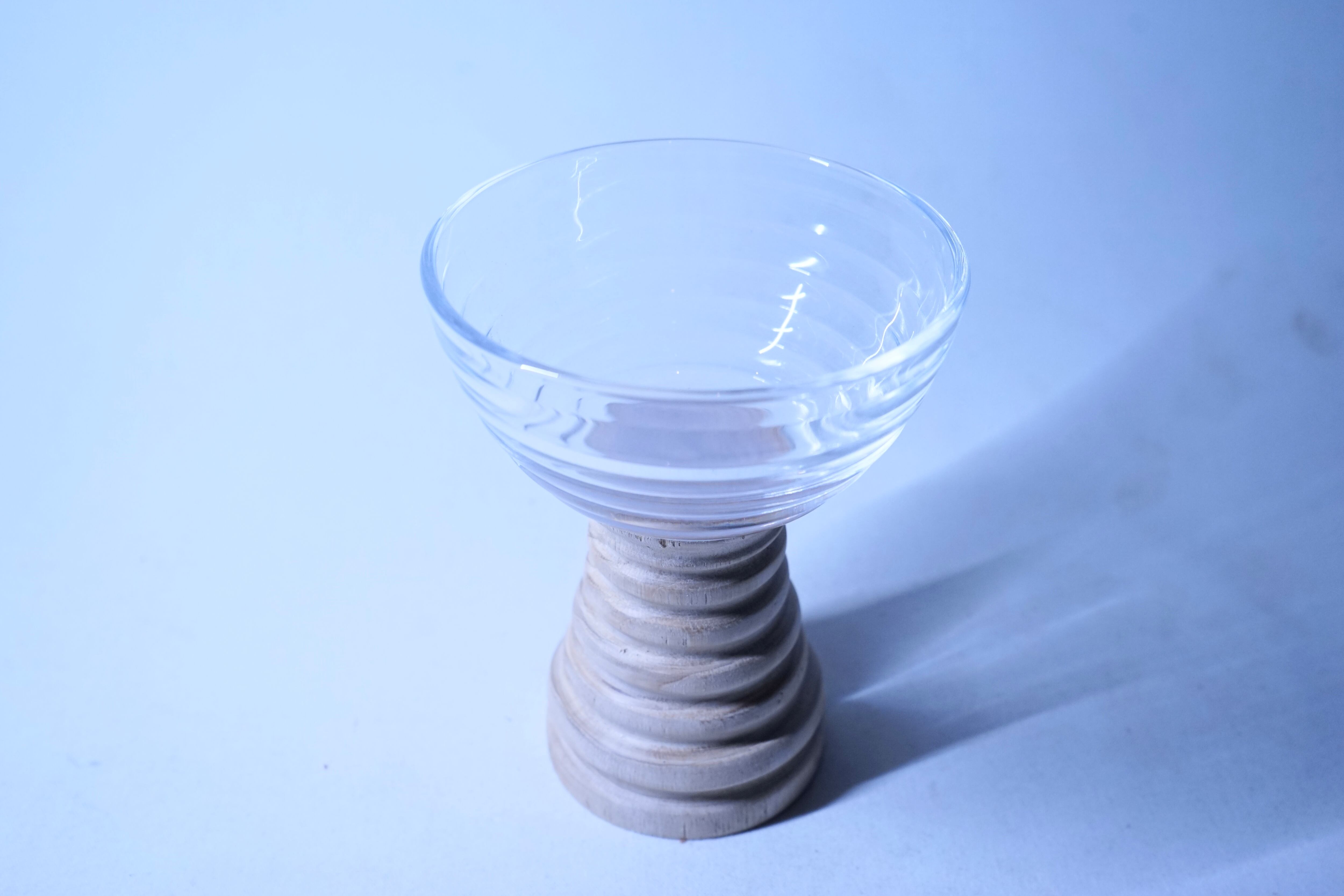 ボーダーラインガラスと白木の台座を使用したボウルの器になります。