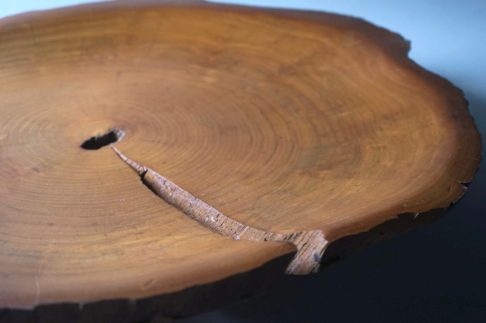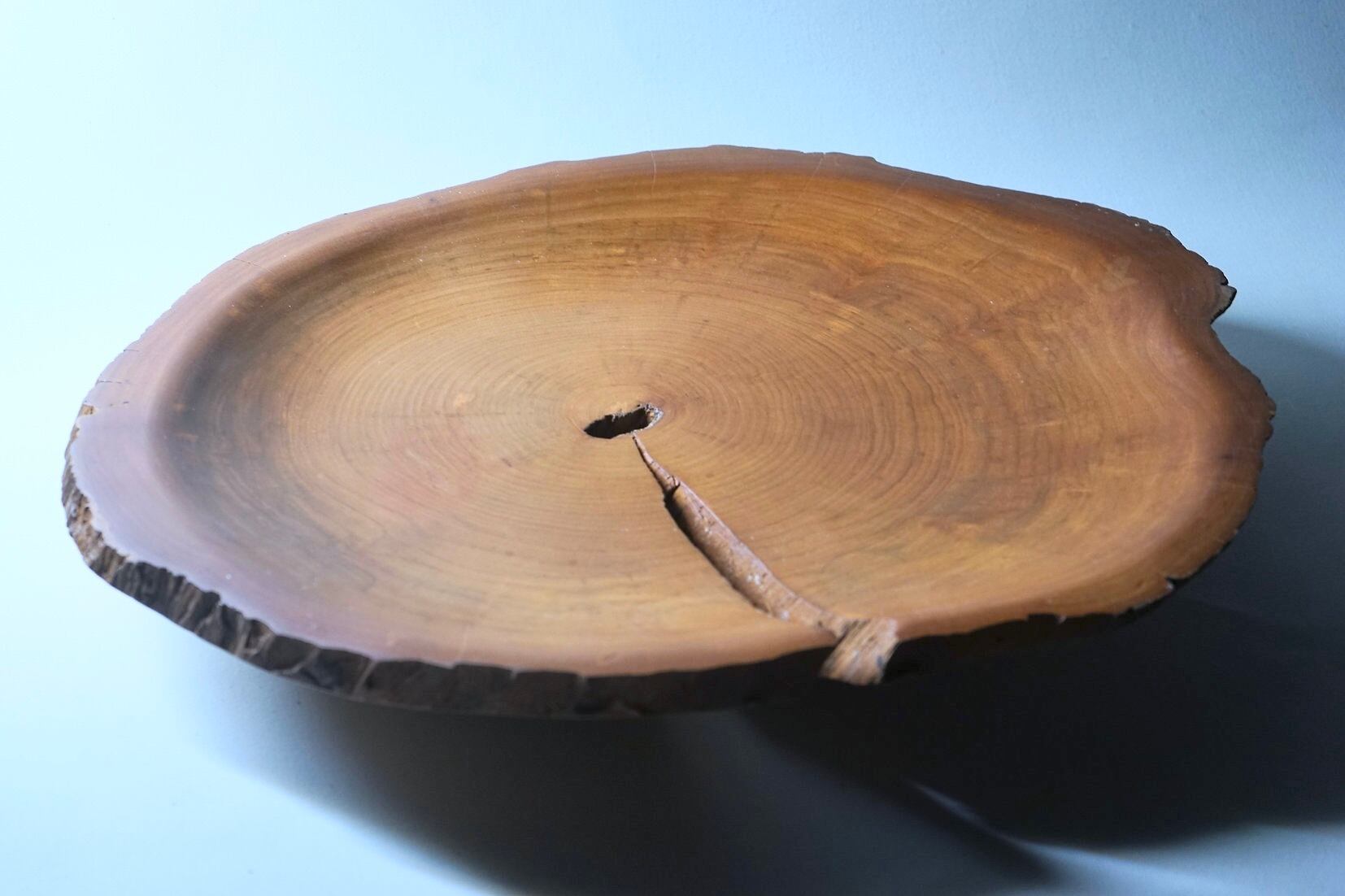 大きな樹木を支える根本付近を木口と言い、そんな生命力溢れる木口付近の切り株を使用して作られた器です。